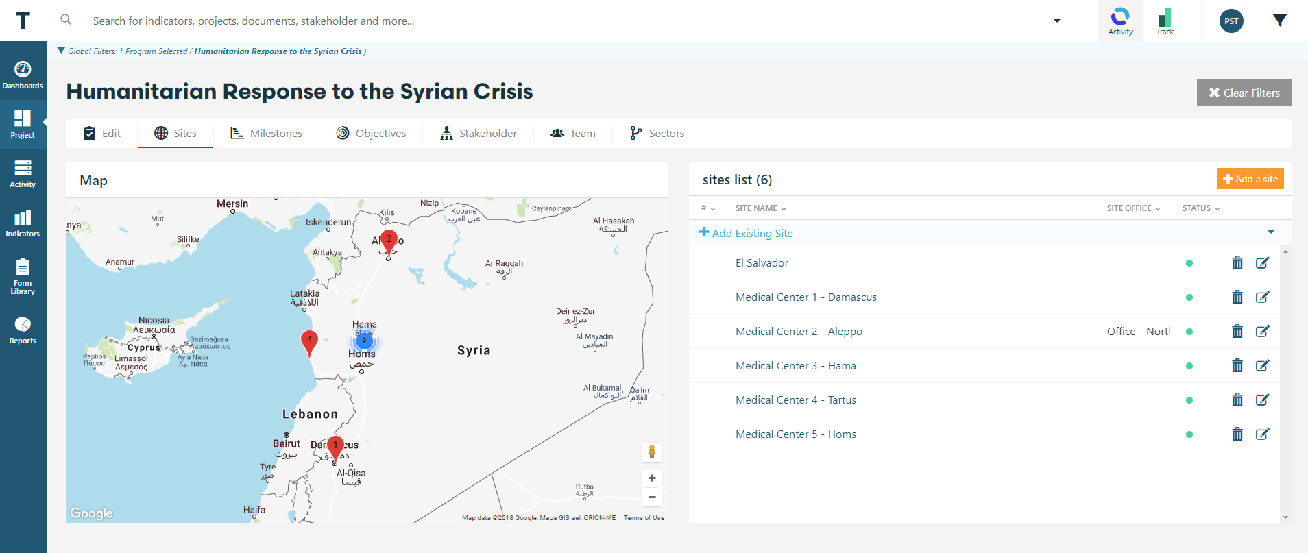 Sites provide the ability to generate a visualization of our program/project locations on a map.