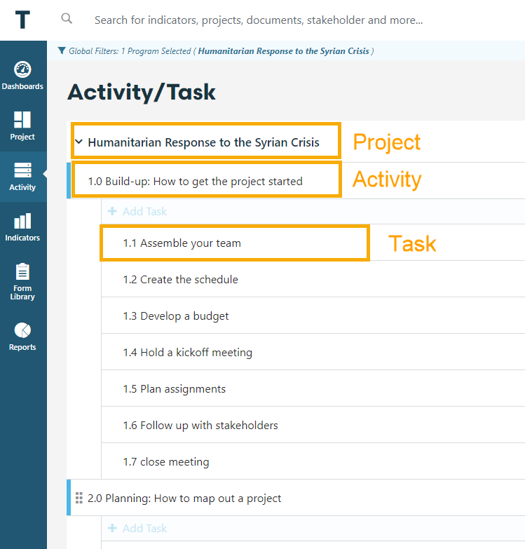 Here's an example of how Programs, Projects and Activities can be broken down: