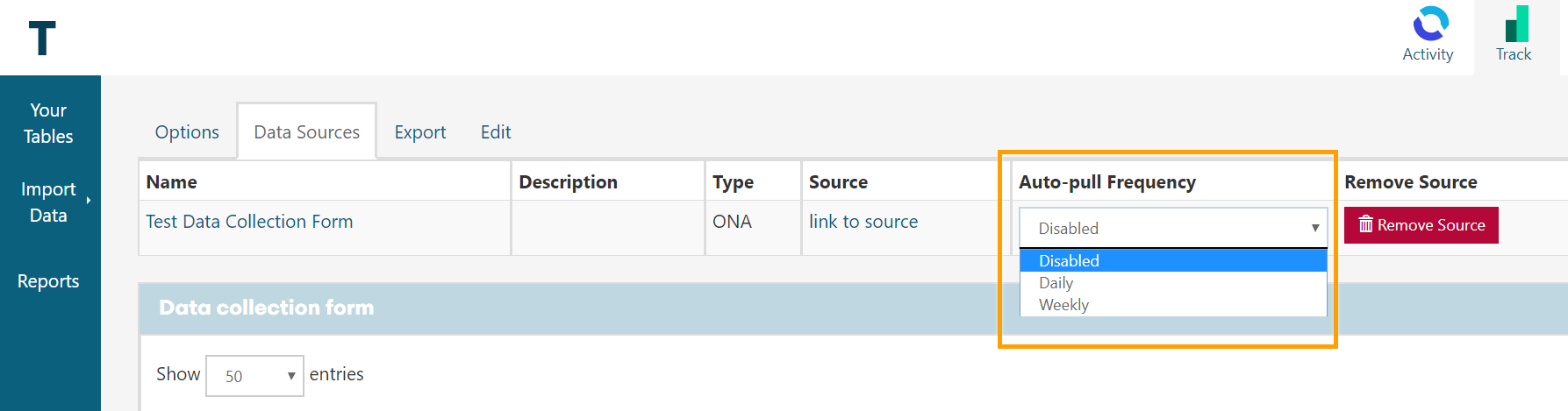 You can set up auto-pull, to pull in any new data from your Ona, Google Sheets or a JSON feeds on specified frequencies.
