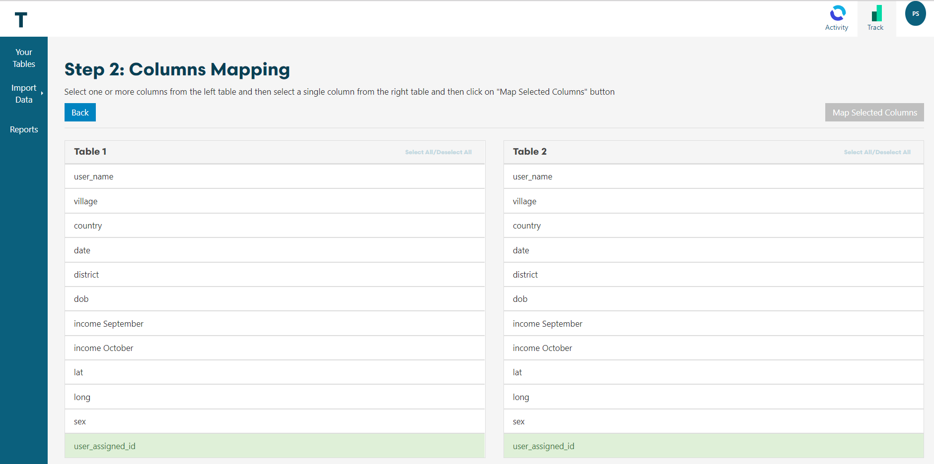 Don't worry if your column headers do not match exactly. In this case you can choose to map two different column names together. Example column: User assigned ID can be mapped to ID number.