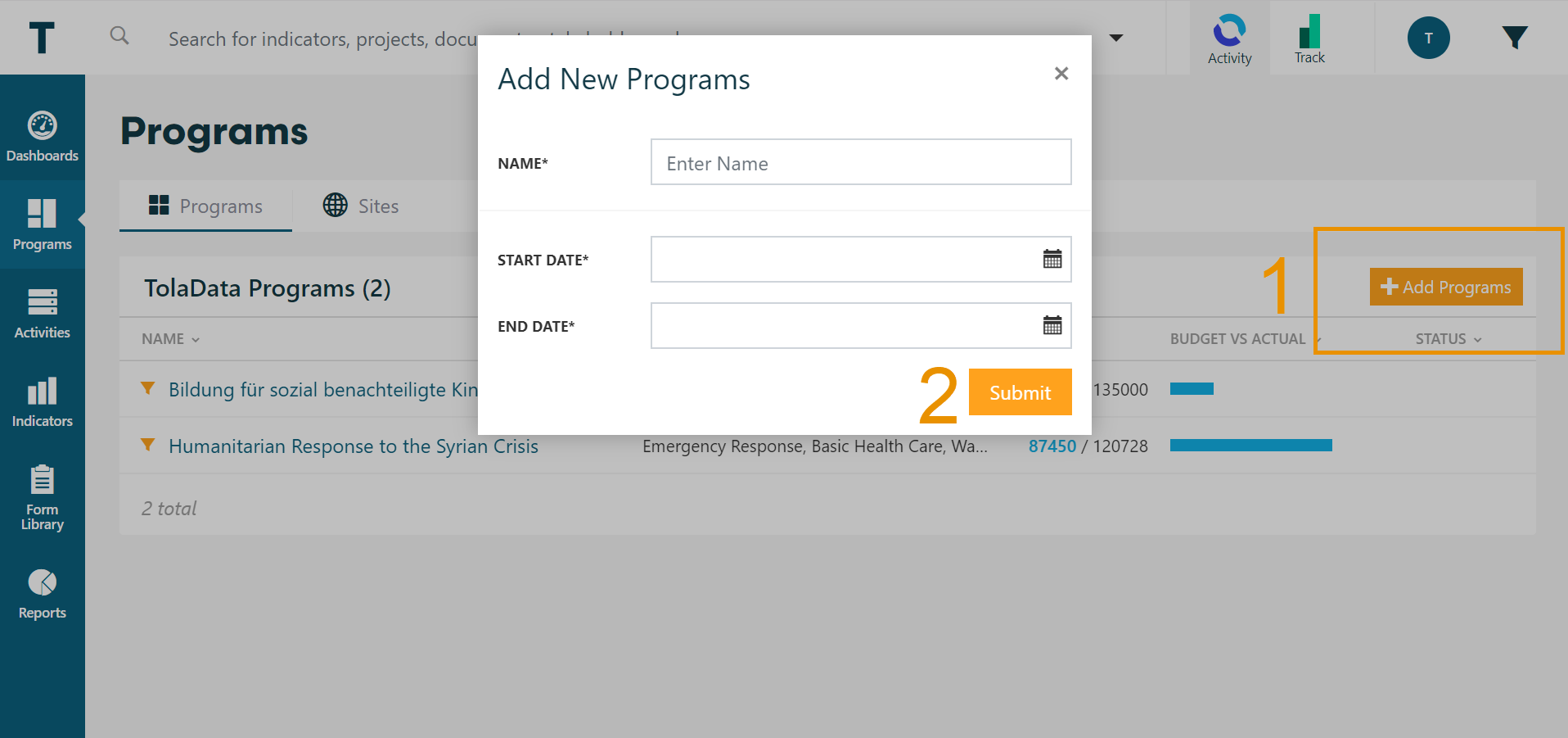 Click on Add Programs and type in the name of your program, its start and end date then hit submit. Presto, your program is created!